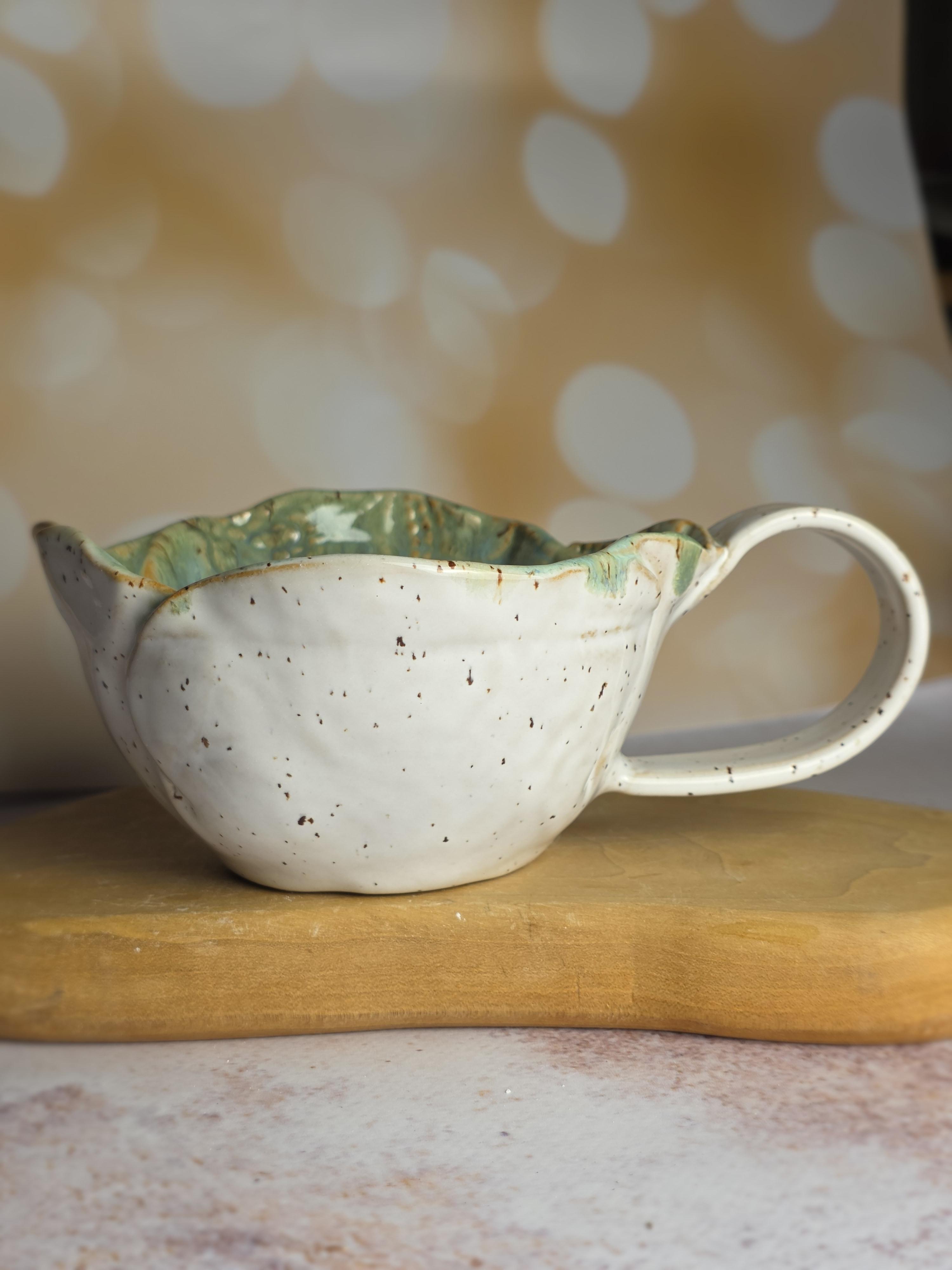 Wyjątkowy kubek wykonany ręcznie z naturalnej gliny, formowany i szkliwiony w pracowni ceramicznej. Każdy egzemplarz powstaje od podstaw – bez masowej produkcji – dlatego delikatne różnice w kształcie, fakturze czy odcieniu czynią go absolutnie niepowtarzalnym.